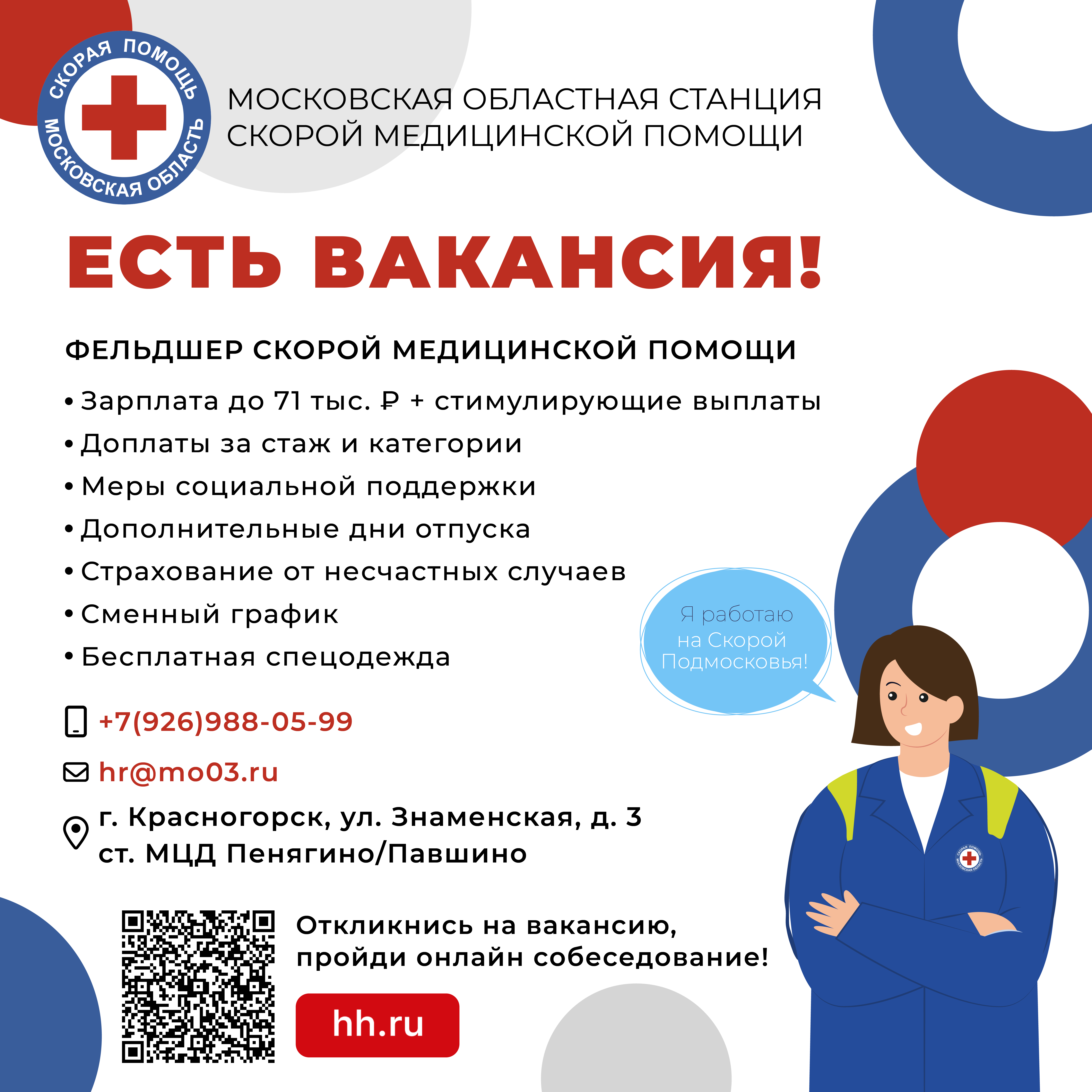 Московская областная станция скорой медицинской помощи приглашает на работу фельдшера скорой медицинской помощи.