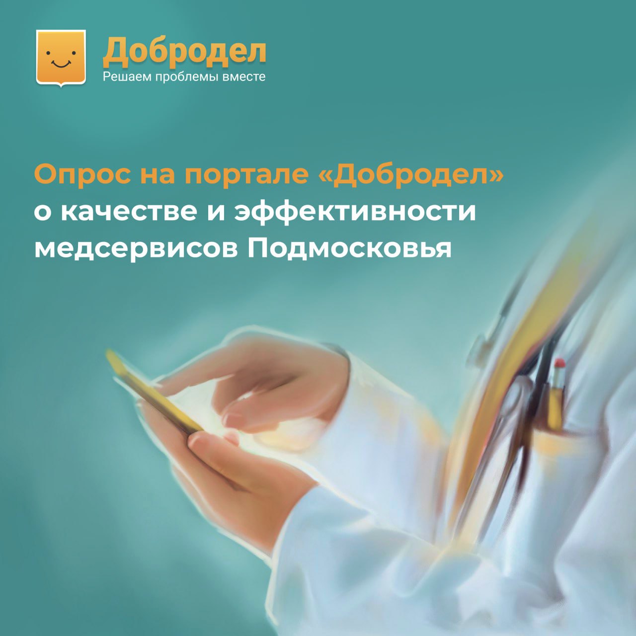 Теперь, когда мы привлекли ваше внимание, давайте серьезно. На портале «Добродел» запущен опрос об эффективности медсервисов в Подмосковье.