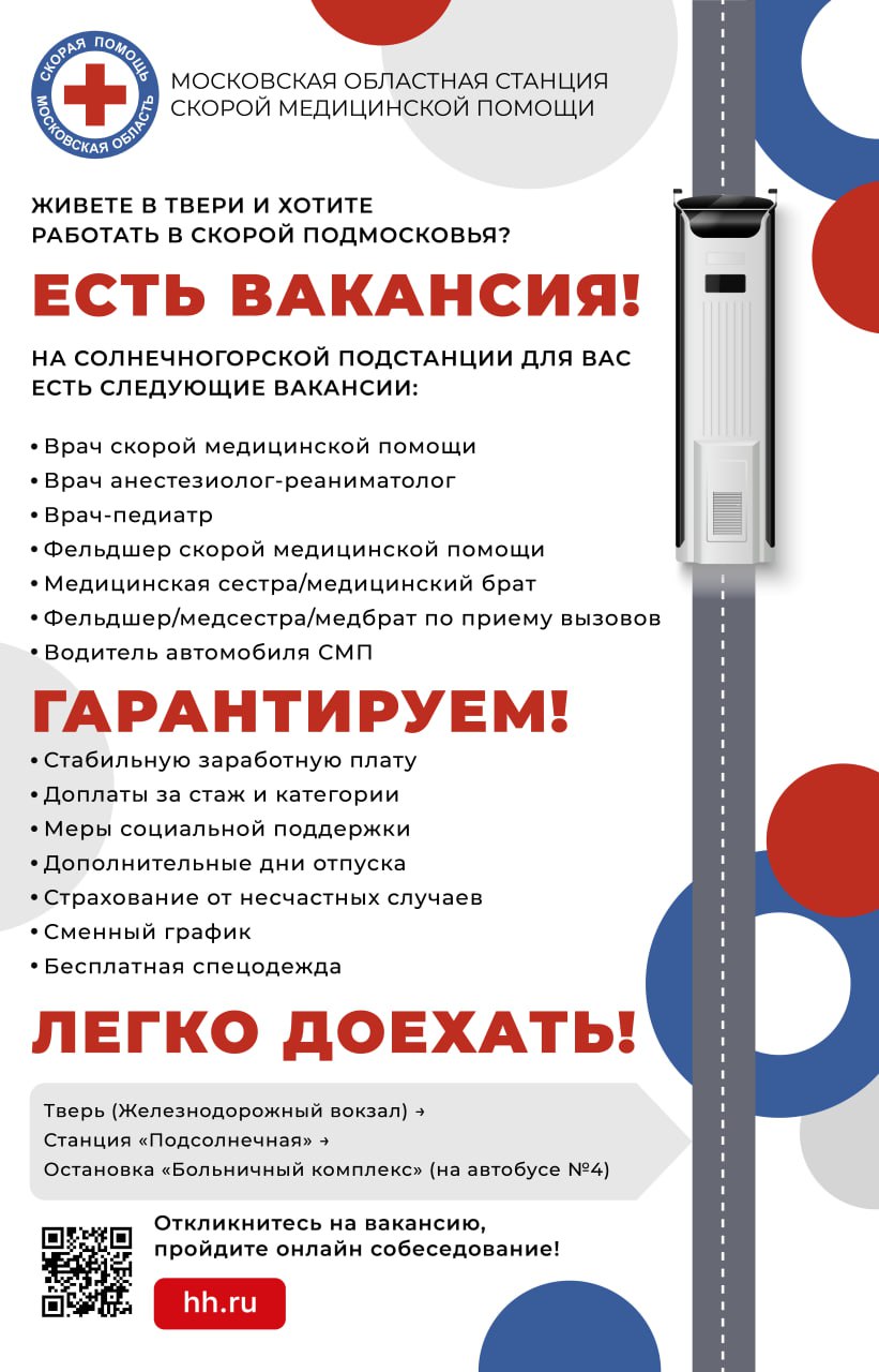 Если Вы живете в Твери и хотели бы работать в Скорой, присоединяйтесь к нашему дружному коллективу в самом солнечном городе Московской области!